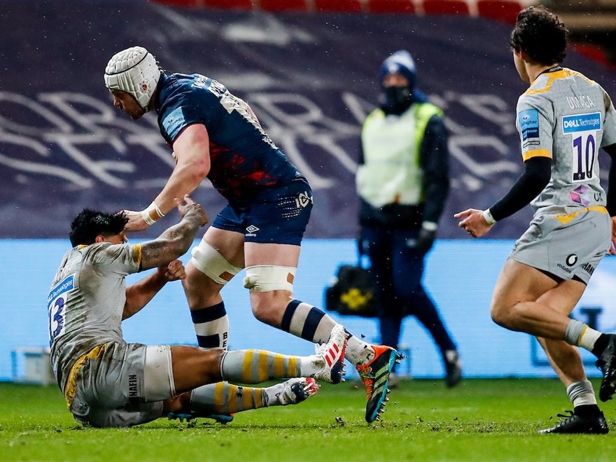 So, heartened by the pre match entertainment and enthused by the warm up I was fully expecting Bristol to hit the ground running and accelerate into a healthy lead at half time from which they would just about claw a narrow win in the second period, as has been the narrative in recent weeks. However, to my surprise it was an opposite story as they soon raced to a 10 point defecit, after dominating territory, butchering two serious visits to the 22 and affording Carl Dickson the opportunity to be inducted into the crazy penalty awarding Hall of Fame when he pinged Dave Attwood for the lowest high tackle ever known to man. As someone remarked on Twitter, if the big man had ducked down any lower, he would have ended up in Australia. Dickson did, at least, seem genuinely apologetic about having to give it although the look on Dave’s face suggested it wasn’t a reciprocated feeling. However, he was soon able to vent his fury by executing a glorious carry that will forever been known as a ‘Sit down Fekitoa’. His marmelising of the chunky Wasp at full flight was like watching heavy lifting machinery lay tarmac on a new motorway and the fact that the commentary team spent well over five minutes analysing if from every possible angle says everything you need to know about Atwood’s contribution to the team effort. Forget climbing the mountain, he is the mountain.